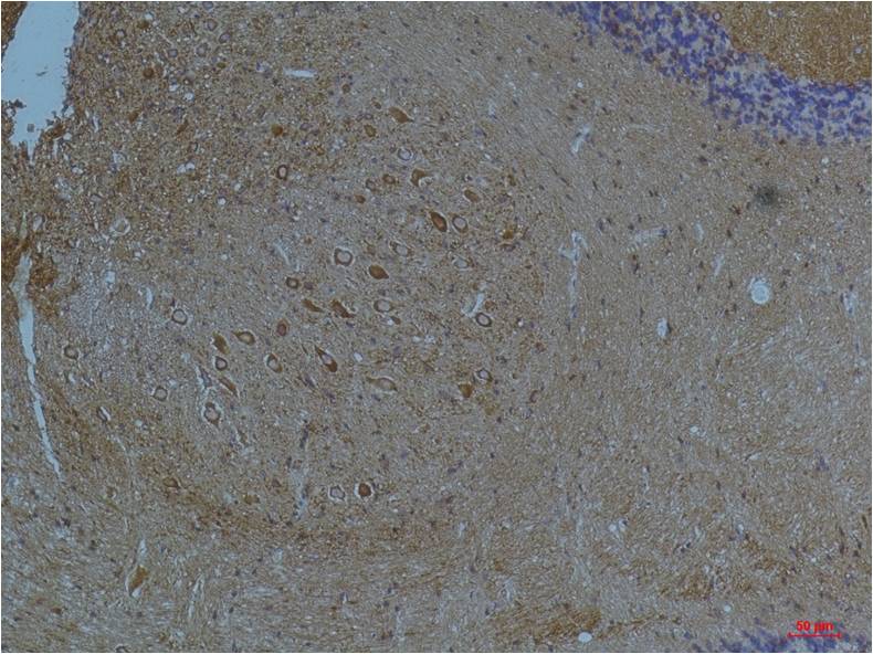 Immunohistochemical analysis of paraffin-embedded Mouse BrainTissue using?Kv11.3 (EA314)Rabbit pAb diluted at 1:200.