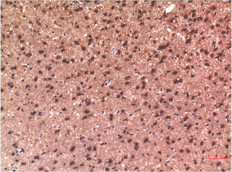 Immunohistochemical analysis of paraffin-embedded Rat Brain Tissue using?Tau( EM1321)Mouse mAb diluted at 1:200.