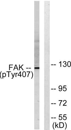 The antiserum was produced against synthesized peptide derived from human FAK around the phosphorylation site of Tyr407. AA range:373-422