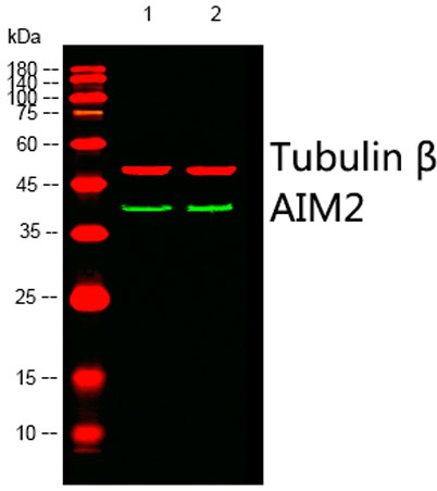 The antiserum was produced against synthesized peptide derived from human AIM2. AA range:51-100
