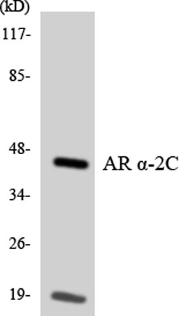 The antiserum was produced against synthesized peptide derived from human Adrenergic Receptor alpha-2C. AA range:336-385