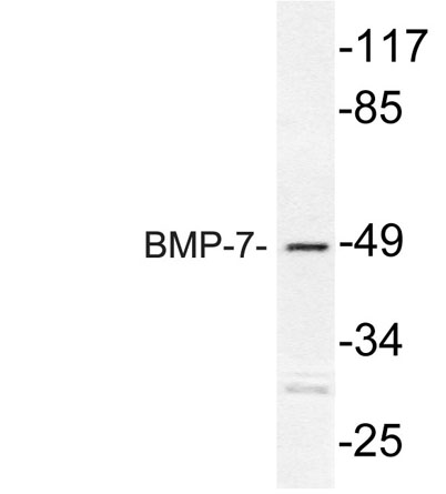 The antiserum was produced against synthesized peptide derived from human BMP-7. AA range:124-173