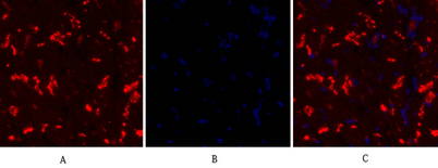 The antiserum was produced against synthesized peptide derived from human Connexin 43. AA range:333-382