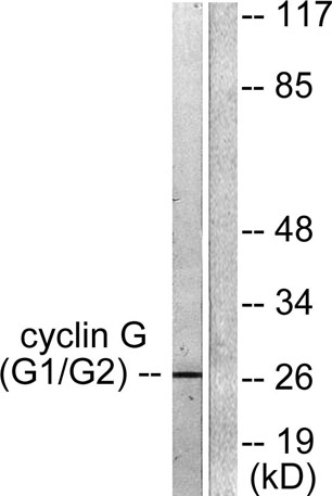 The antiserum was produced against synthesized peptide derived from human Cyclin G. AA range:161-210