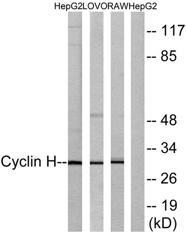 The antiserum was produced against synthesized peptide derived from human Cyclin H. AA range:274-323