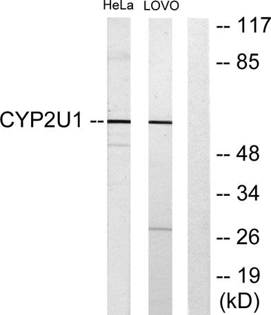The antiserum was produced against synthesized peptide derived from human Cytochrome P450 2U1. AA range:281-330