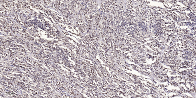 Immunohistochemical analysis of paraffin-embedded human small intestinal carcinoma tissue. 1,primary Antibody was diluted at 1:200(4° overnight). 2, Sodium citrate pH 6.0 was used for antigen retrieval(>98°C,20min). 3,Secondary antibody was diluted at 1:2