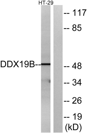 The antiserum was produced against synthesized peptide derived from human DDX19B. AA range:1-50