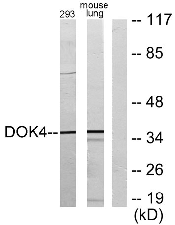 The antiserum was produced against synthesized peptide derived from human DOK4. AA range:11-60