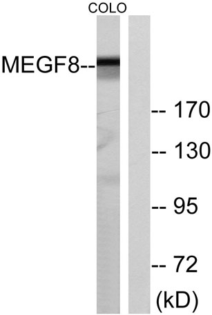The antiserum was produced against synthesized peptide derived from human MEGF8. AA range:1243-1292