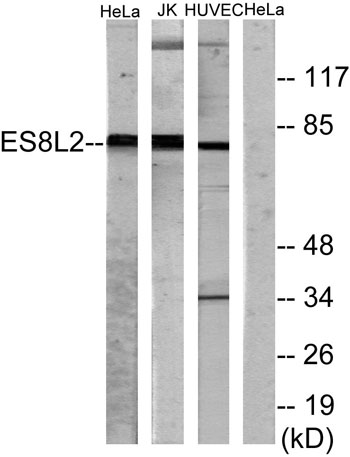 The antiserum was produced against synthesized peptide derived from human ES8L2. AA range:1-50