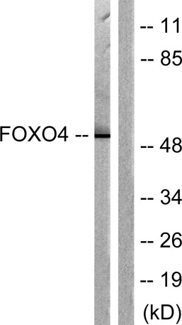 The antiserum was produced against synthesized peptide derived from human FOXO4. AA range:417-466