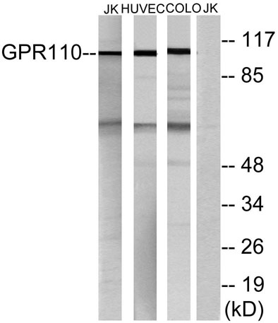 Western Blot analysis of various cells using GPR110 Polyclonal Antibody