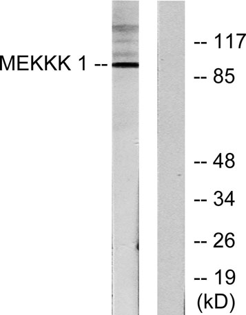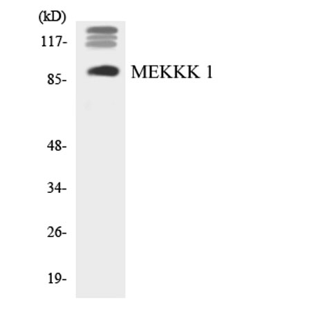 The antiserum was produced against synthesized peptide derived from human MEKKK 1. AA range:371-420