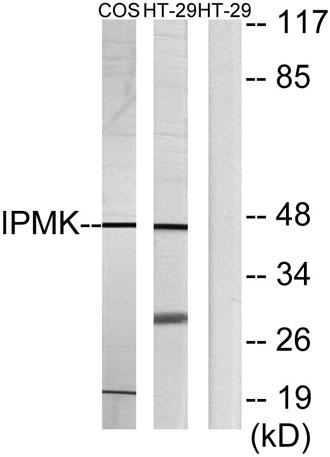 The antiserum was produced against synthesized peptide derived from human IPMK. AA range:311-360
