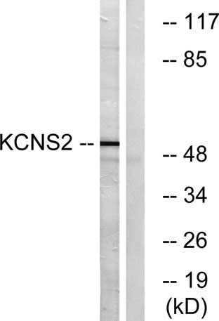 The antiserum was produced against synthesized peptide derived from human KCNS2. AA range:197-246