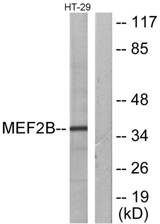 The antiserum was produced against synthesized peptide derived from human MEF2B. AA range:51-100