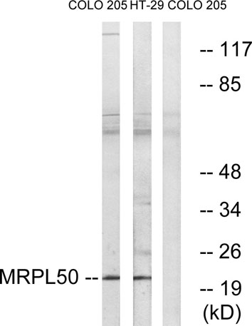 The antiserum was produced against synthesized peptide derived from human MRPL50. AA range:109-158
