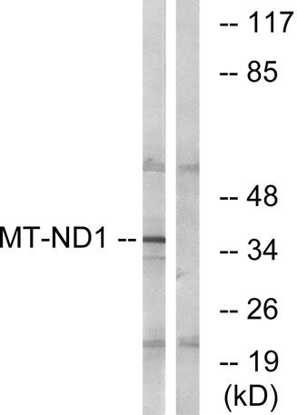 The antiserum was produced against synthesized peptide derived from human MT-ND1. AA range:176-225
