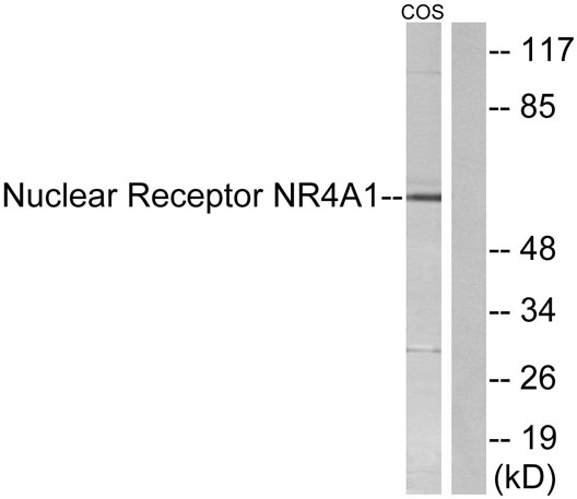 The antiserum was produced against synthesized peptide derived from human Nuclear Receptor NR4A1. AA range:317-366