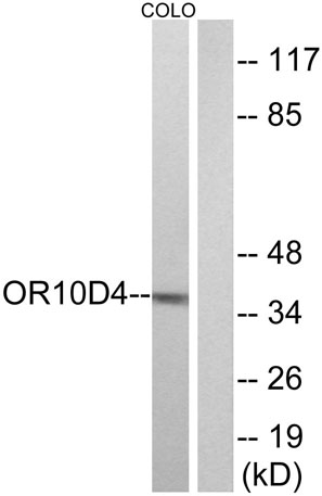 Immunogen: The antiserum was produced against synthesized peptide derived from human OR10D4. AA range:161-210