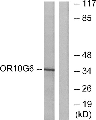 The antiserum was produced against synthesized peptide derived from human OR10G6. AA range:261-310
