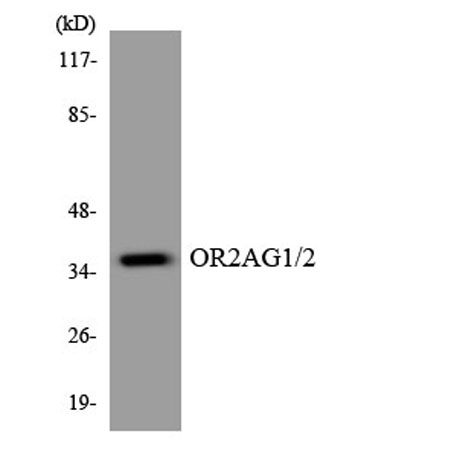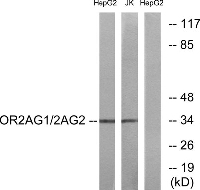 The antiserum was produced against synthesized peptide derived from human OR2AG1/2AG2. AA range:61-110