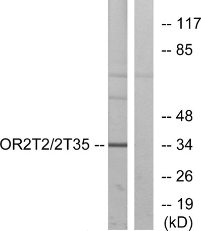 The antiserum was produced against synthesized peptide derived from human OR2T2/2T35. AA range:61-110