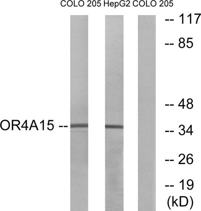 The antiserum was produced against synthesized peptide derived from human OR4A15. AA range:261-310