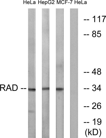 The antiserum was produced against synthesized peptide derived from human RAD. AA range:41-90