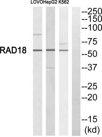 The antiserum was produced against synthesized peptide derived from human RAD18. AA range:301-350