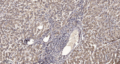 Immunohistochemical analysis of paraffin-embedded human liver cancer. 1, Antibody was diluted at 1:200(4° overnight). 2, Tris-EDTA,pH9.0 was used for antigen retrieval. 3,Secondary antibody was diluted at 1:200(room temperature, 45min).
