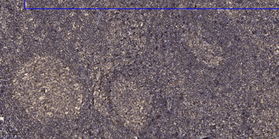 Immunohistochemical analysis of paraffin-embedded human tonsil. 1, Antibody was diluted at 1:200(4° overnight). 2, Tris-EDTA,pH9.0 was used for antigen retrieval. 3,Secondary antibody was diluted at 1:200(room temperature, 45min).