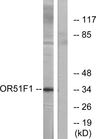 The antiserum was produced against synthesized peptide derived from human OR51F1. AA range:269-318