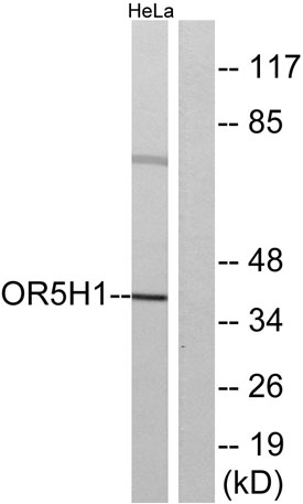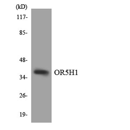 The antiserum was produced against synthesized peptide derived from human OR5H1. AA range:262-311