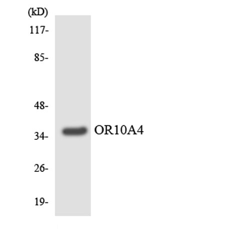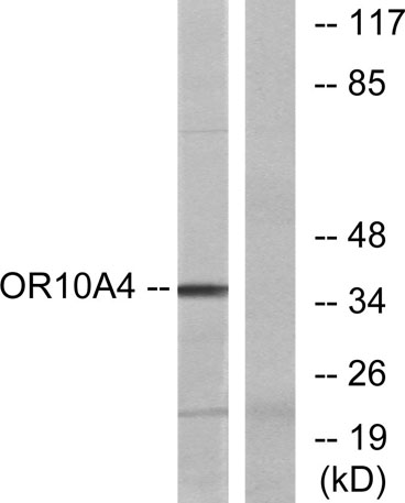 The antiserum was produced against synthesized peptide derived from human OR10A4. AA range:261-310